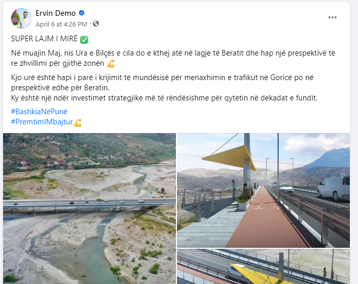 Në muajin Maj, nis Ura e Bilçës e cila do e kthej atë në lagje të Beratit dhe hap një prespektivë të re zhvillimi për gjithë zonën .