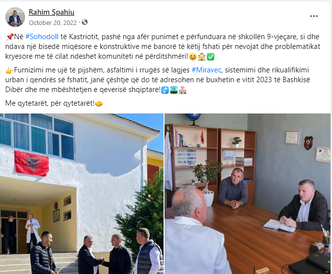 Furnizimi me ujë të pijshëm, asfaltimi i rrugës së lagjes #Miravec, sistemimi dhe rikualifikimi urban i qendrës së fshatit, janë çështje që do të adresohen në buxhetin e vitit 2023 të Bashkisë Dibër dhe me mbështetjen e qeverisë shqiptare.