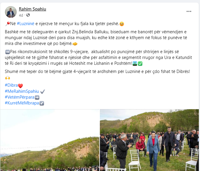 #Luzninë Pas rikonstruksionit të shkollës 9-vjeçare, aktualisht po punojmë për shtrirjen e linjës së ujësjellësit në të gjithë fshatrat e njësisë dhe për asfaltimin e segmentit rrugor nga Ura e Katundit të Ri deri të kryqëzimi i rrugës së Hoteshit me Lishanin e Poshtëm!