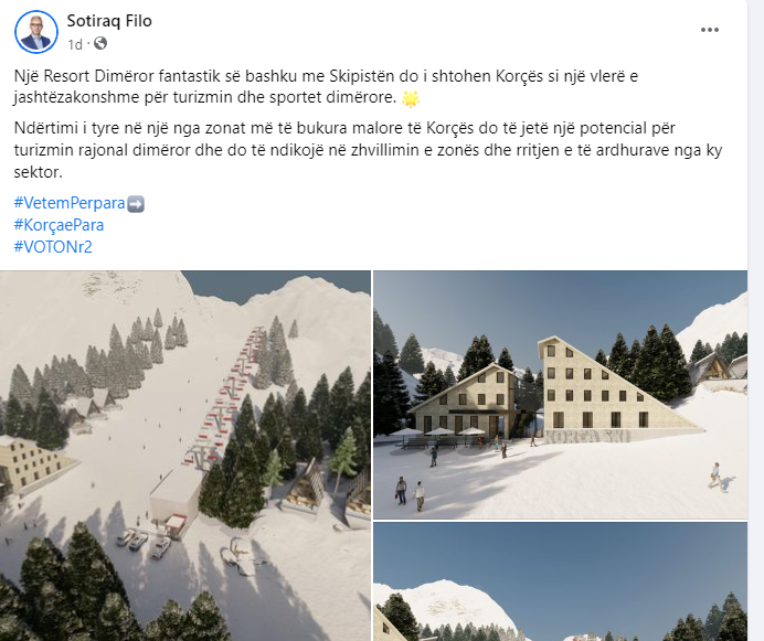 Një Resort Dimëror fantastik së bashku me Skipistën do i shtohen Korçës si një vlerë e jashtëzakonshme për turizmin dhe sportet dimërore. Ndërtimi i tyre në një nga zonat më të bukura malore të Korçës do të jetë një potencial për turizmin rajonal dimëror dhe do të ndikojë në zhvillimin e zonës dhe rritjen e të ardhurave nga ky sektor.