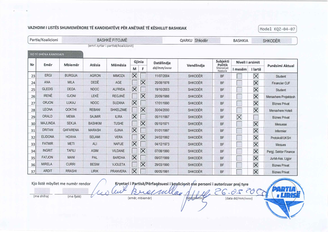 Kandidatët për Këshill Bashkiak